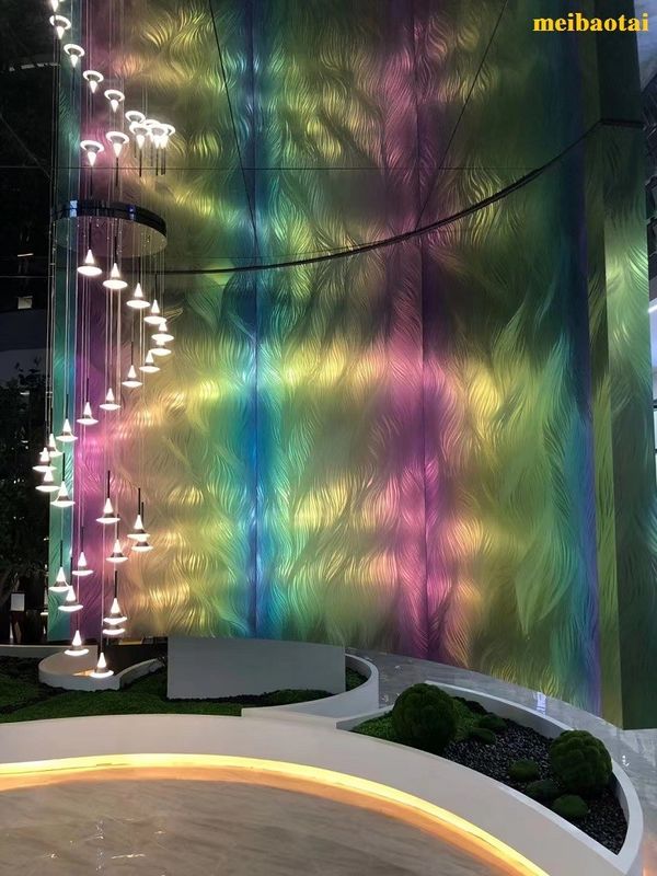 उच्च अंत अनुकूलित लेजर पैटर्न इंद्रधनुष रंग स्टेनलेस स्टील शीट सजावट लॉबी